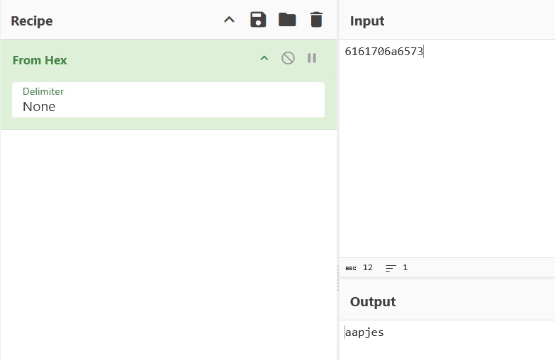 全部把最后两位提取出来就是“6161706a6573”,最后对这个十六进制进行ASCII转换就是我们的答案。(冷门到家了)