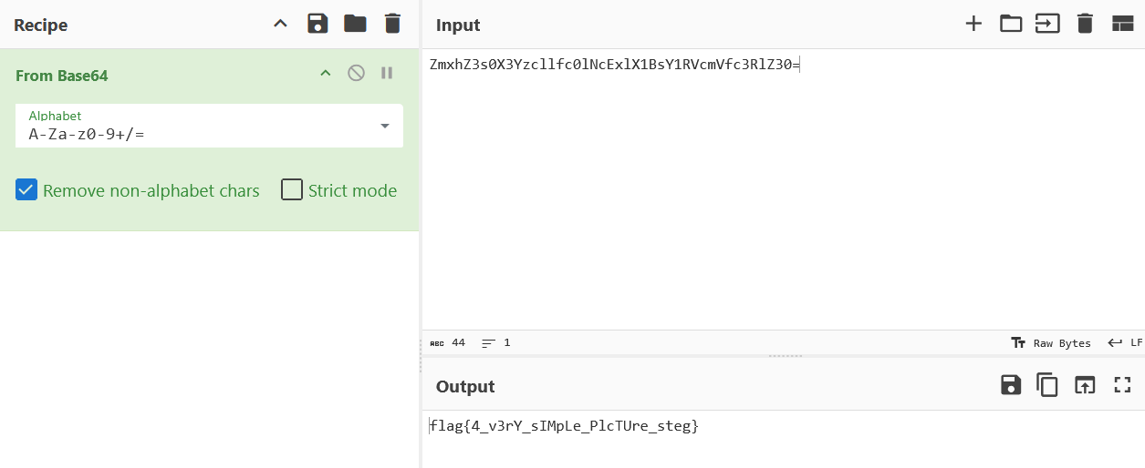 Flag | flag{4_v3rY_sIMpLe_PlcTUre_steg} |