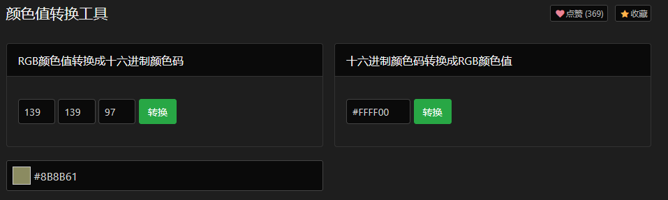 这里依然不是我们想要的十六进制数据。还需要把对应的RGB转换为16进制就用到这个工具。比如第一列的RGBA数据RGBA(139,139,97,255),把前面三位依次放入工具再进行转换就可以得到16进制的表示了。