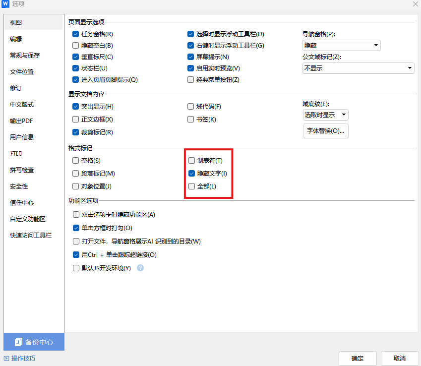 我用的是WPS,左上角“文件” - “选项” - “视图”中可以设置为显示隐藏文字,确认后就会出现被隐藏的文字了。