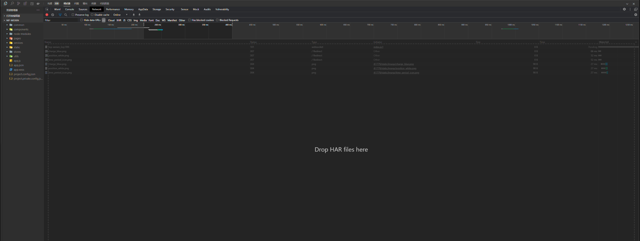 写uniapp的时候,想要调试项目,微信小程序的Network突然被覆盖了,上面显示drop har files here。