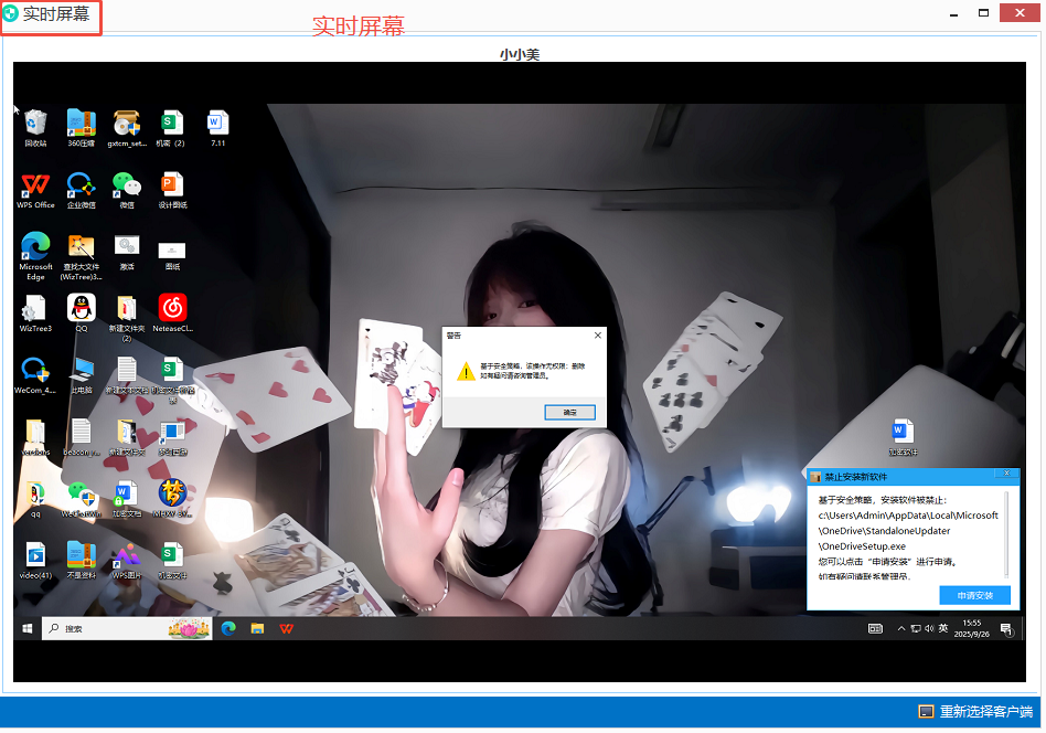 软件的实时屏幕功能允许管理员在控制端即时查看任意受控电脑的当前屏幕画面,延迟极低,画面清晰流畅。无需员工操作或授权,管理者可随时“走进”远程工位,了解其正在进行的工作内容。