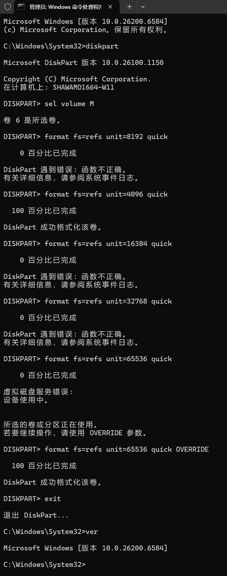 命令行格式化ReFS示例