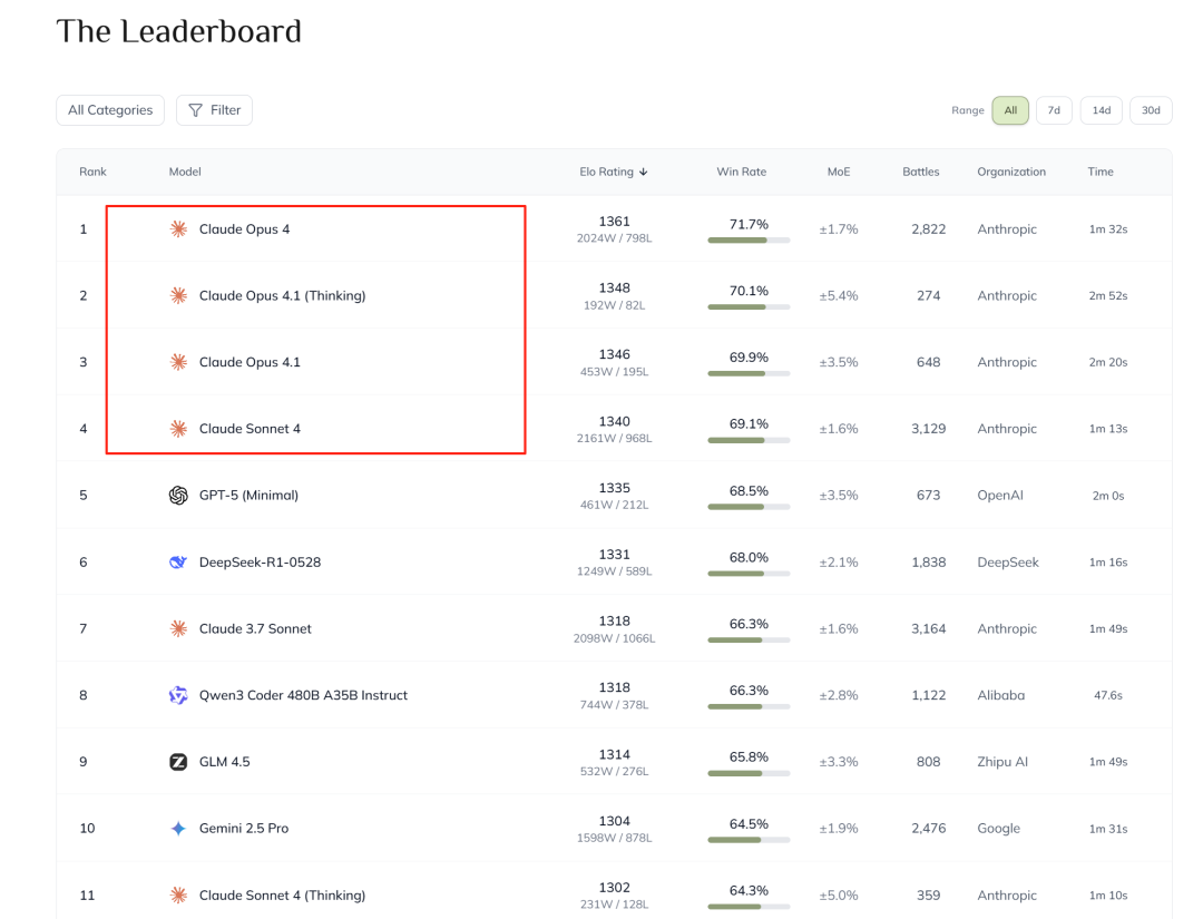 gpt-5-high、claude-opus-4-1-20250805-thinking-16k 这两个站在金字塔顶尖的两个模型。他们的回答真的是很绝。和一般的那些web端免费模型,有断层差距。