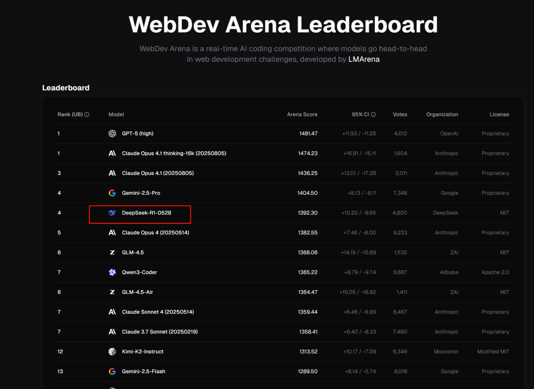Design Arena 上排名前 15 的开源LLM全部来自中国,第一个非中文的GPT OSS 120B,排第 16 位