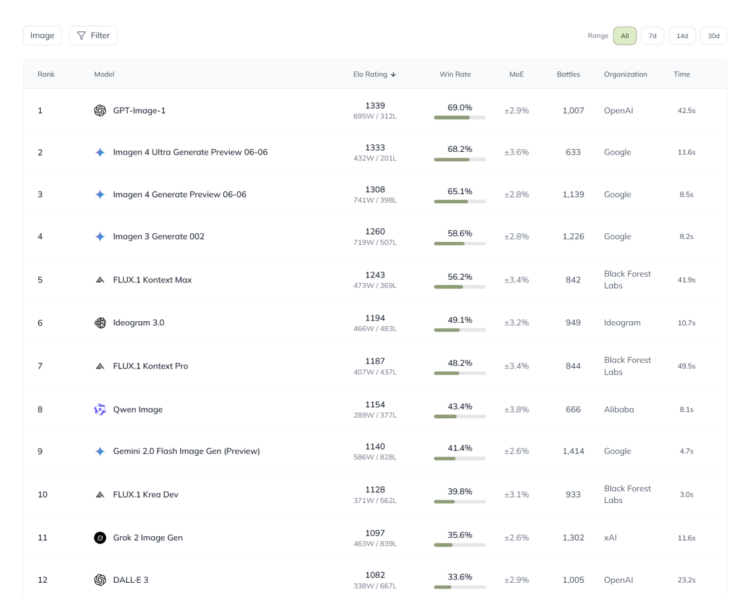 用“视觉/成品”对战,依靠真人投票计算胜率和 Elo;不是跑分,不是代码质量单项赛。新模型需要累计到一定对局(50+)才算稳定。适合观察“生成成品是否讨人喜欢/够用”,但不等于生产可维护的大型工程。