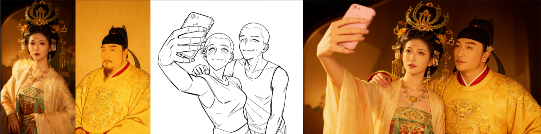 将图1女子和图2男子合进一张画面,参考图3姿势