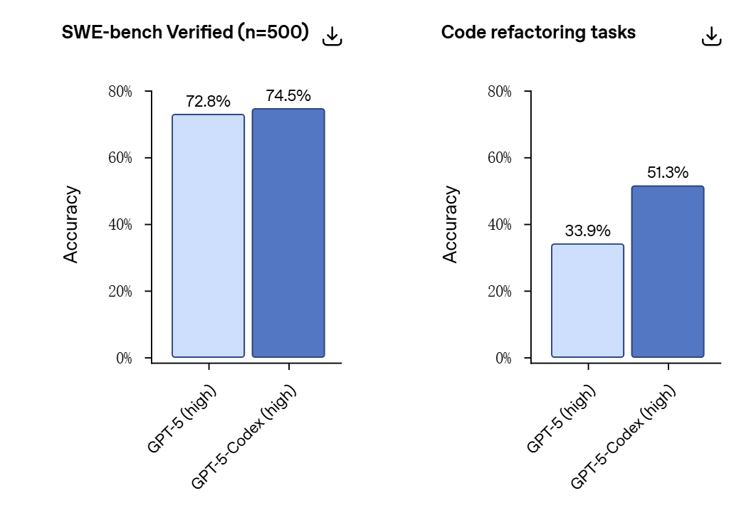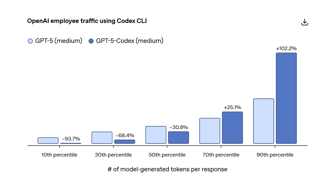 GPT-5-Codex 会根据任务的复杂性更动态地调整它花在思考上的时间。