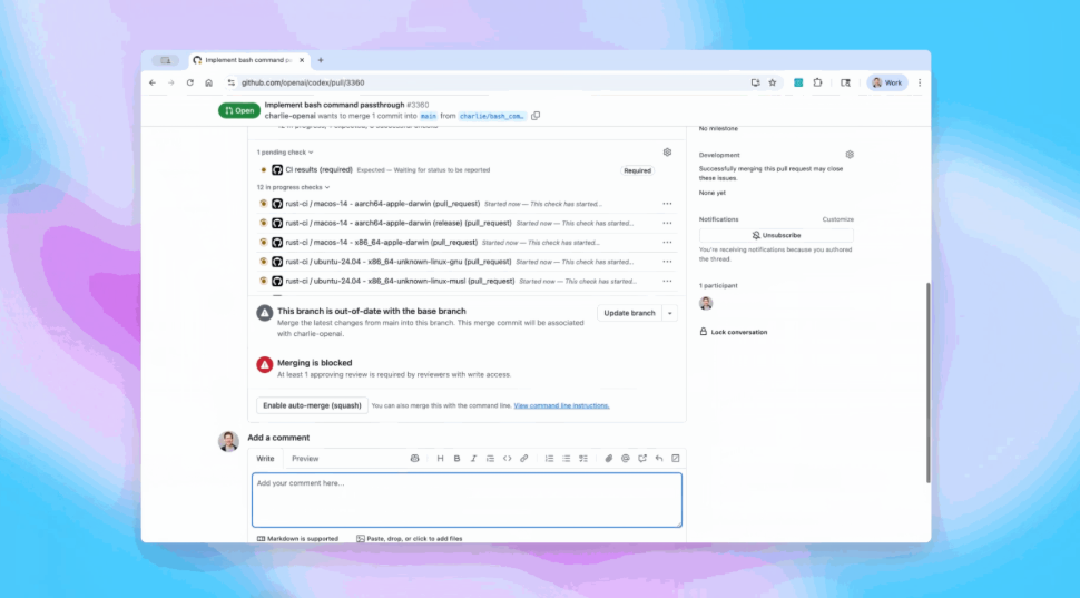 Codex 可以在你开发的地方运行——在终端或 IDE、Web 上、GitHub 中,甚至在 ChatGPT iOS 应用程序中。