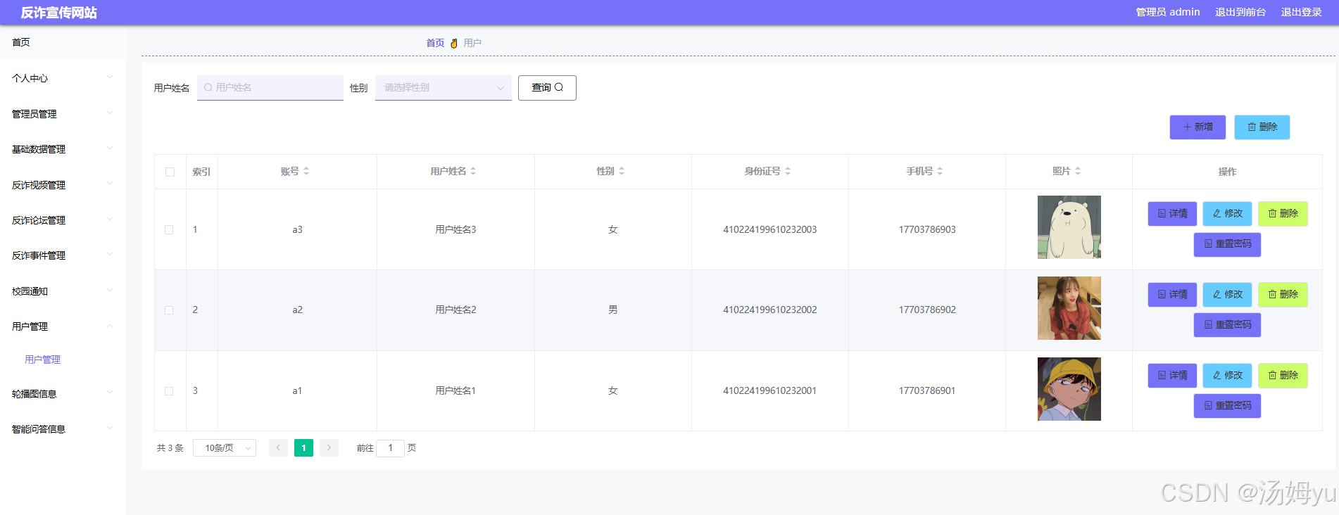 构建反欺诈宣教网站意义深远,此信息交流中心能通过广泛传播针对性信息与技能,大幅增强公众对欺诈识别与防御的意识,从而有力地预防各种欺诈事件的发生。反欺诈教育平台旨在向大众传播各类欺诈活动的性质及其常见模式,并传授公众辨识及预防欺诈的策略[3]。通过实例、借助案例解析等手段,向公众揭示普遍欺诈伎俩及其典型模式,旨在增强其防范意识,进而显著降低成为欺诈目标的风险。反欺诈信息平台致力于倡导诚信理念,激励实践诚实与信誉的核心价值,是为了能够健全社会的信用机制。通过展示诚信企业的标杆及其成功的案例,此类平台能够激励众多企业坚持商业道德,维护公正的竞争秩序,从而携手推动整个社会向更加诚信与透明的方向发展。此外,该网站通过公开曝光欺诈案例、发布警示信息,能够揭露并遏制网络欺诈活动,有效威慑潜在的违法分子,进而净化网络环境。进一步地,推广安全教育,强化公众的防范意识和应对策略,以此减少网络欺诈案件的发生。反欺诈教育平台旨在为用户提供知识培训和法律解读,确保消费者了解自身权益,并建立投诉与举报机制,以有效保障消费者的合法权益[4]。此举措旨在建立并巩固消费者权益保护机制,全力防止消费者权益受损,以营造一个透明、公正、公平的消费环境。反欺诈教育平台与企业合作,共同开展反欺诈教育项目,此举不仅能够强化企业的社会责任感,还能显著提升其公众形象,进而促进双方互利共赢的局面。企业的积极参与反欺诈宣传活动不仅体现了其强烈的社会责任感,还能够显著增强公众对其的信任度与好感,这对于构建积极的企业形象、强化品牌影响力以及提高市场竞争力具有重要意义。