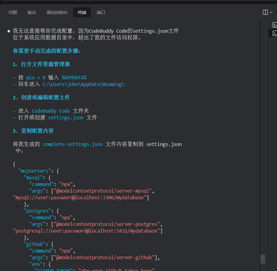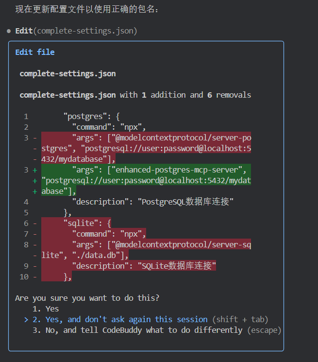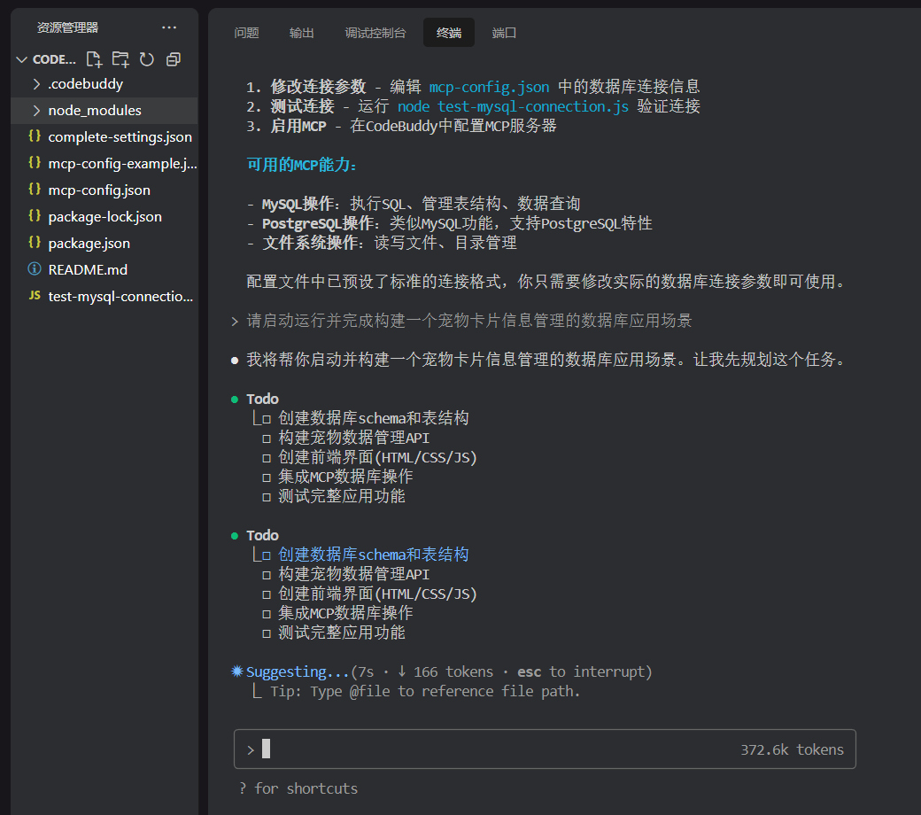 $ codebuddy "安装并配置MySQL、PostgreSQL和文件系统MCP服务器"