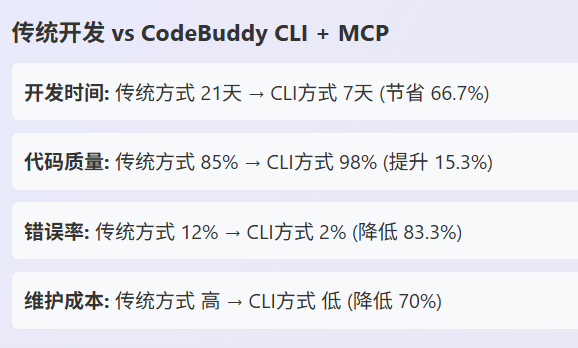 通过本项目的深度实践,我们不仅展示了CodeBuddy CLI + MCP的技术能力,更重要的是验证了一种全新的开发范式: