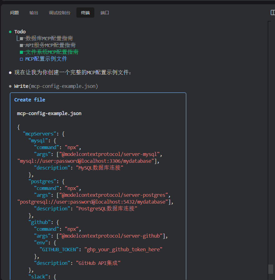系统自动生成标准化的MCP配置文件: