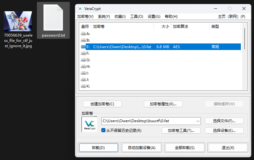 最后得到了一张图片和一个文本,文本内容是第二个密码。和手机输入不同密码进入不同系统类似,这里是指挂载时输入不同密码会有不同的挂载结果。图片的名字说这张图片和本次ctf无关,应该只是个看板娘。