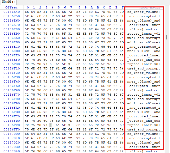 这里可以用winhex工具进行磁盘镜像。镜像后就可以直接看到磁盘的hex格式数据。flag的下半部分就在数据中间的部分。