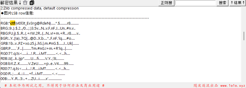 这里很简单,只需拖入随波逐流工具进行自动解析,发现RGB位平面顺序的LSB下藏有flag,至此结束。
