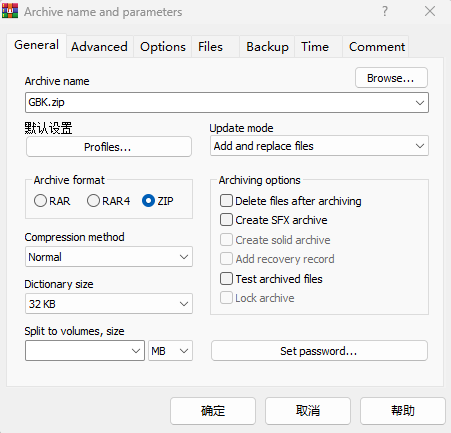 现在是2025年,最新的WinRAR已经更新到7.13版本了。但这里为了进行明文攻击,必须使用上面注释提到的“winrar版本 5.70 beta 2”。下载好该版本的WinRAR后,对前面GBK的输出文本进行加密。