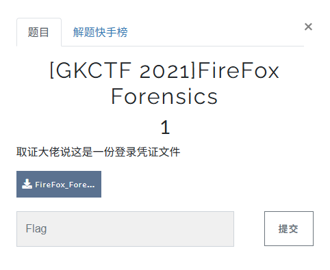 下载题目文件,压缩名称为“FireFox....",内容是一个db和一个json,这是加密的火狐浏览器凭证。