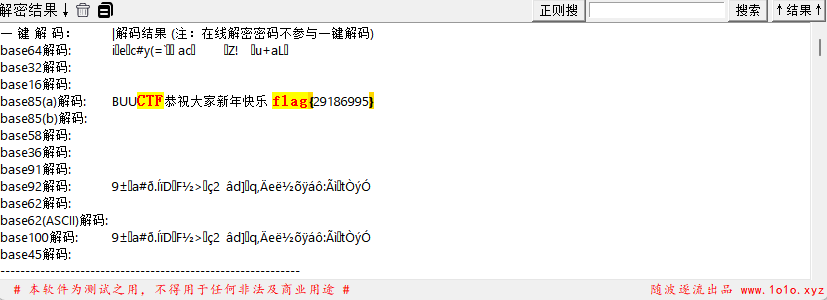 复制出来放进随波逐流工具进行一键解码,得到flag。