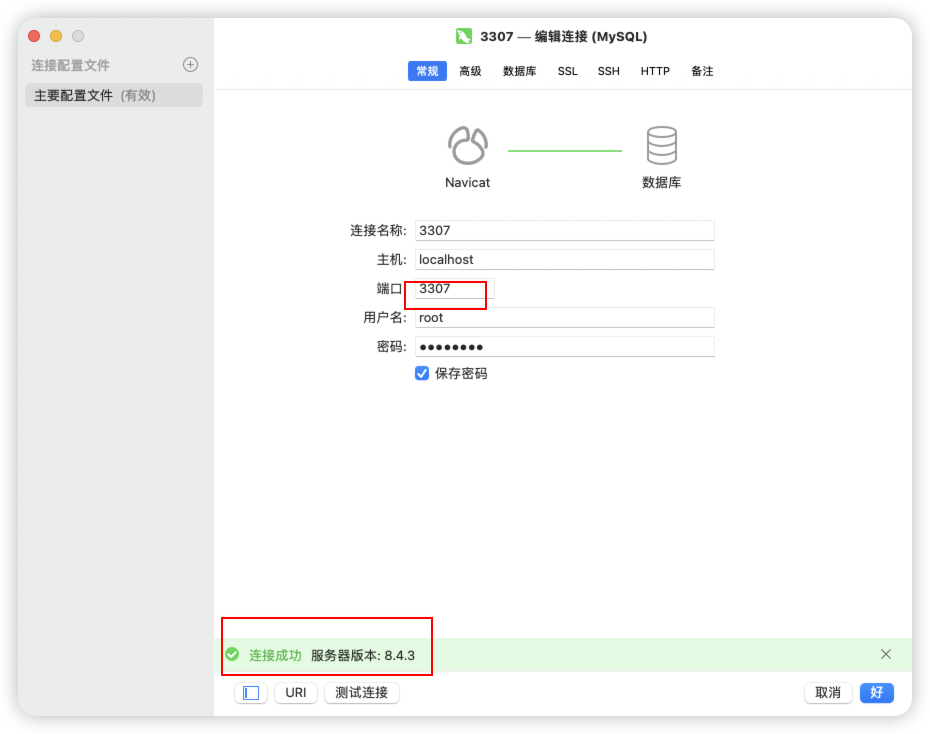 打开navicat 用3307端口连接测试: