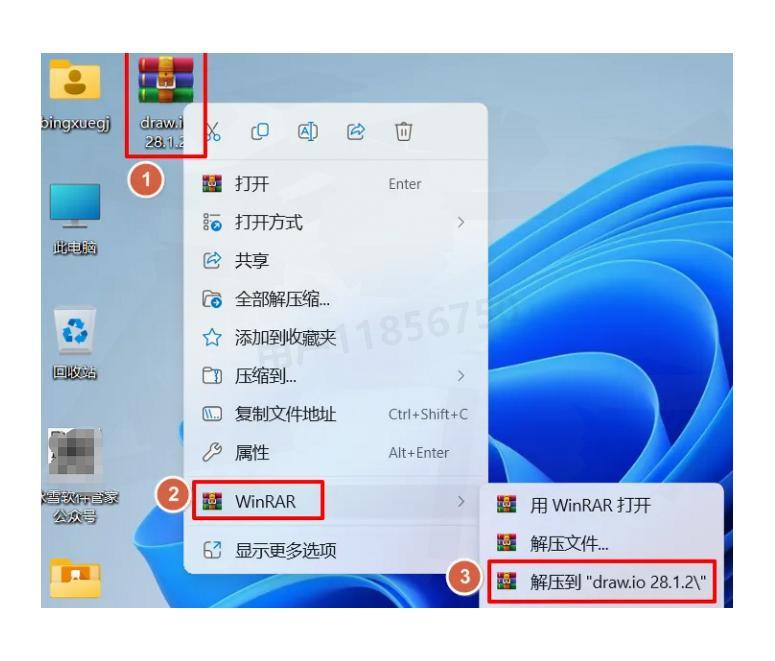 下载完成后,你会得到一个【draw.io 28.1.2.rar】压缩包。接下来的操作很简单: