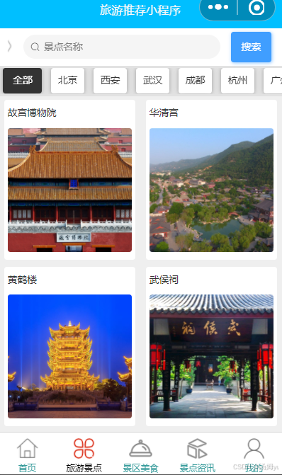 在互联网技术飞速发展的当下,全球范围内的旅游业正经历着前所未有的数字化变革。随着移动互联网的普及,智能手机成为人们获取信息的主要工具。庞大的手机网民群体为旅游信息化发展提供了广阔的市场空间。随着社会经济水平的不断提高,越来越多的人开始选择在空闲时间里去旅游放松、旅游社交等。对于城市来说,旅游作为一种休闲娱乐活动已经成为城市经济发展中不可或缺的重要组成部分。但在旅游过程中容易发生不了解相关城市的旅游信息、旅游目标不明确等而导致一些问题[6]。一方面,旅游信息的海量性和分散性给游客带来了困扰。游客在规划行程时,往往需要在多个平台上搜索信息,耗费大量的时间和精力。另一方面,信息的准确性和时效性也难以保证。一些旅游信息更新不及时,导致游客获取到的信息与实际情况不符,影响了旅游体验。例如,游客可能会因为不确定景点开放时间无法顺利参观而耽误行程。此外,旅游市场的不规范也给游客带来了风险,如虚假宣传、价格欺诈等问题时有发生。因此,开发一款功能强大、便捷实用的旅游景点推荐微信小程序显得尤为重要。该小程序可以方便管理人员对旅游景点推荐微信小程序的管理,提高信息管理工作效率及查询效率,用户可以在手机上通过微信小程序来查看景点,更加的方便,有利于提升用户的旅游体验,推动旅游业的持续健康发展。