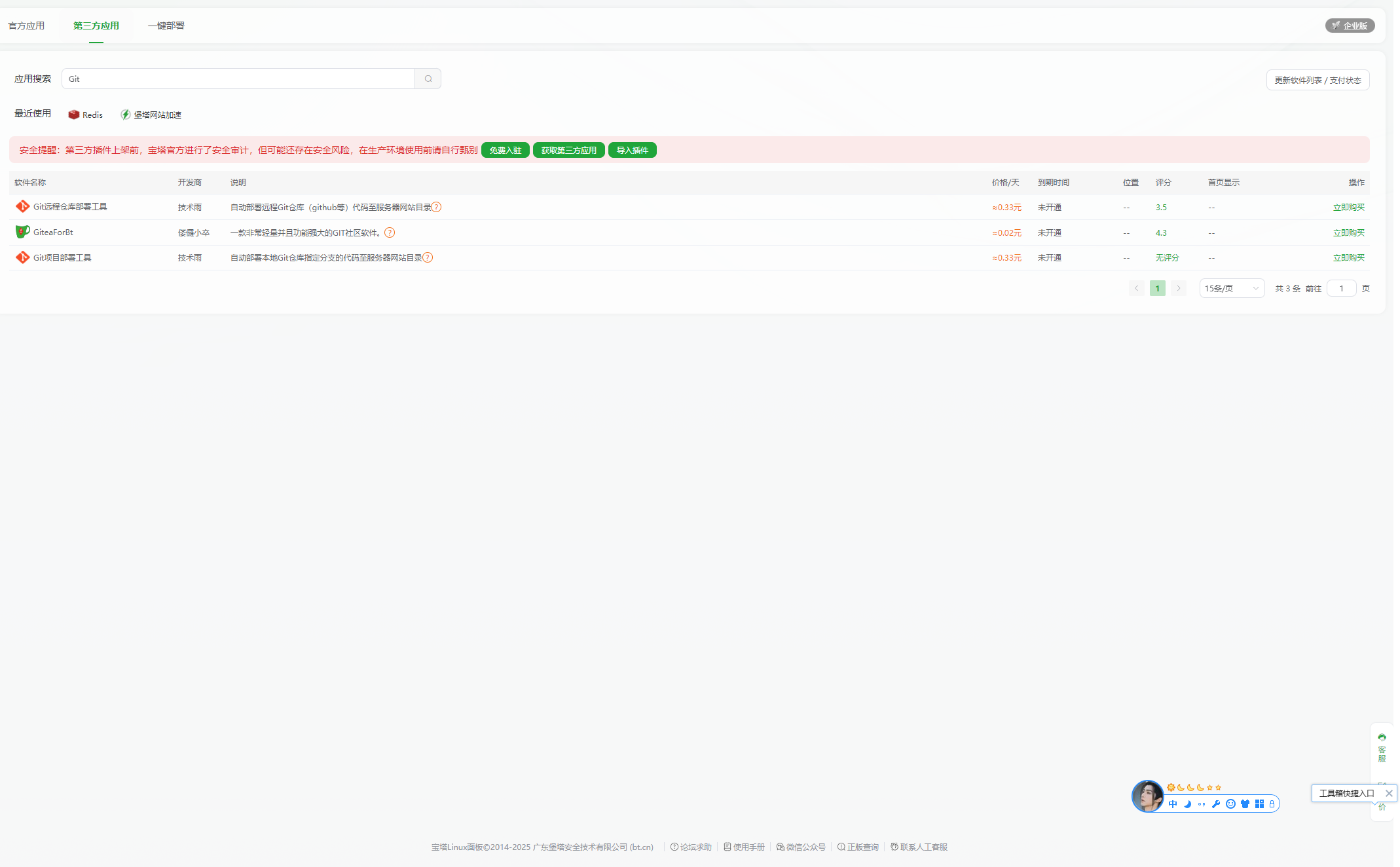 在较新版本的宝塔面板中,Git 可能被集成到了“运行环境”或“开发工具”中,或者名称稍有不同。请仔细在“软件商店”中搜索。如果确实没有,强烈建议使用方法二(命令行安装),这是最通用可靠的方式。