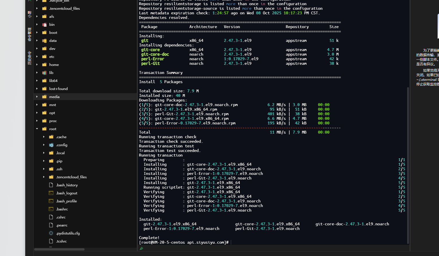 这个错误提示 -bash: git: command not found 表示您的服务器系统无法找到 git 命令。这通常是因为系统还没有安装 Git。