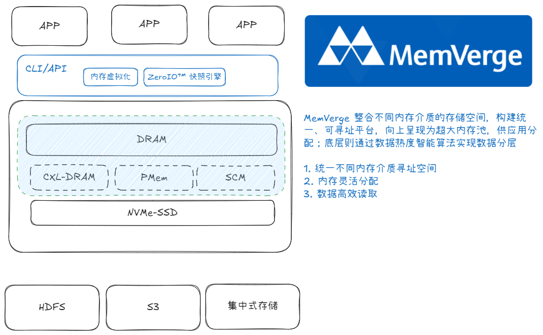 核心问题 :“大内存”应用的脆弱性随着 AI/ML 训练、基因组学、高频交易等应用的兴起,“大内存计算”时代已经到来。这些应用通常是长时间运行的、有状态的,其关键计算状态(可达 TB 级别)完全保存在易失性的 DRAM 中 14。这构成了一个巨大的“爆炸半径”(blast zone):任何系统崩溃、电源故障或瞬时错误都可能导致数小时甚至数天的计算成果付之一炬。此外,作为 AI 计算核心的 GPU 资源既昂贵又稀缺,但其平均利用率却常常低于 15%,造成了严重的资源浪费 17。MemVerge 的创始使命 :开启大内存计算之门MemVerge 的使命是“开启大内存计算之门”(Open the Door to Big Memory Computing),其愿景是让“所有应用都生存在内存中”(All Applications Live in Memory)14。为了实现这一目标,他们致力于提供一个基础设施层,使这些大内存应用具备容错能力、可移动性以及高效的资源利用率。技术挑战 :状态持久化的性能瓶颈传统的应用状态持久化方法,如检查点(checkpointing),通常是将内存中的数据写入外部存储(如 SSD 或分布式文件系统)。对于 TB 级的内存快照,这个过程是 I/O 密集型的,耗时可达数分钟甚至数小时,期间应用必须暂停,严重影响了计算效率 15。同时,如何在集群中高效、公平地调度和管理稀缺的 GPU 资源,本身就是一个复杂的编排难题 17。MemVerge 的解决之道 :将内存状态视为一等公民MemVerge 的理念是将内存中的应用状态视为可直接管理和操作的一等公民。其核心技术是内存虚拟化和一项名为“ZeroIO™”的专利技术。该技术可以在几秒钟内完成从 DRAM 到持久性内存(如 Intel Optane PMem 或其他 SCM)的内存到内存快照,完全绕过了缓慢的传统存储 I/O 路径 15。这一核心能力是其“透明检查点”功能的基础。基于此,MemVerge 构建了一整套“AI 基础设施操作系统”——MemVerge.ai。该平台不仅提供应用容错,还进一步扩展到 GPU 资源的智能编排、自动化部署以及跨节点、跨云的作业迁移能力(称为“GPU Surfing”),从而全面提升大内存应用的弹性和效率 18。MemVerge 的核心技术是整合(Verge)不同内存介质(DRAM、CXL DRAM、PMem/SCM),构建统一视角的多级内存缓存系统,基于IO调度算法,实现数据的智能分层,从而提高大内存系统的计算效率。