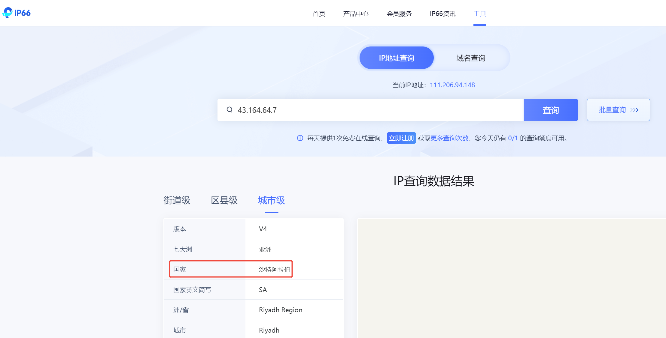 查IP归属地,有的站点查得不准,可以多换几个站点查询试试