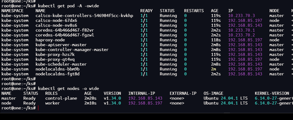 本文以x86-ubuntu搭建1 master 1 node为例,演示如何在一台机器使用4条简短的命令部署k8s 1.34.0,若有其他需要可添加我微信