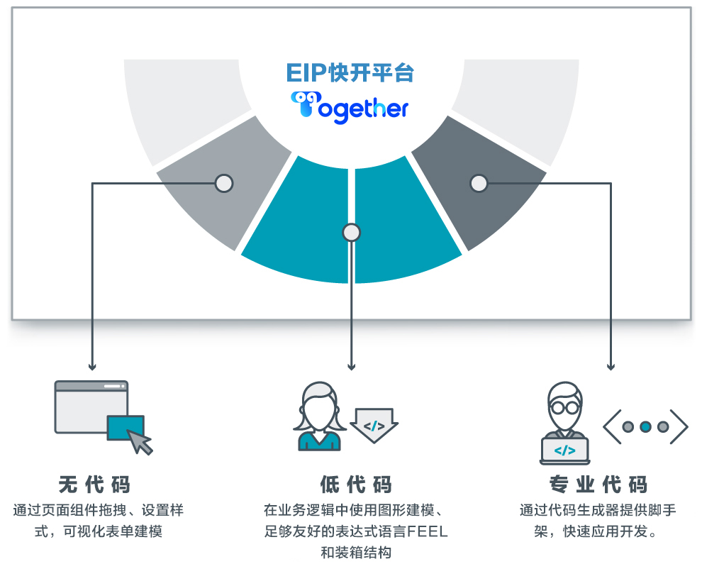 低代码快速开发平台和Together规则引擎提供无代码、低代码和专业代码功能,您的组织可以配置和利用这些功能以最好地满足您的需求。通过提供一系列开发选项,它们可以通过创建一个协作和跨职能的环境来帮助缩小业务与IT的鸿沟,让专业开发人员和普通开发人员可以共同构建令人惊叹的应用程序。这些应用程序开发速度快,成本远低于传统编程方法,并且易于与现有的遗留系统和数据源以及机器学习(ML)、人工智能(AI)等新技术集成。