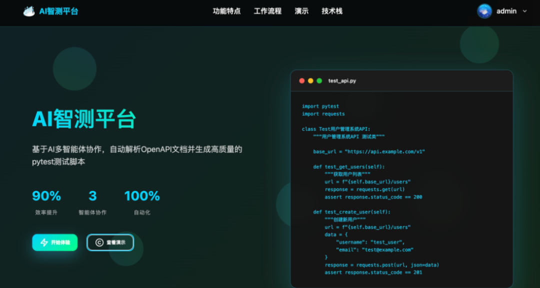 • 从需求到报告全链路自动化:文档解析→用例设计→代码生成→执行→分析
