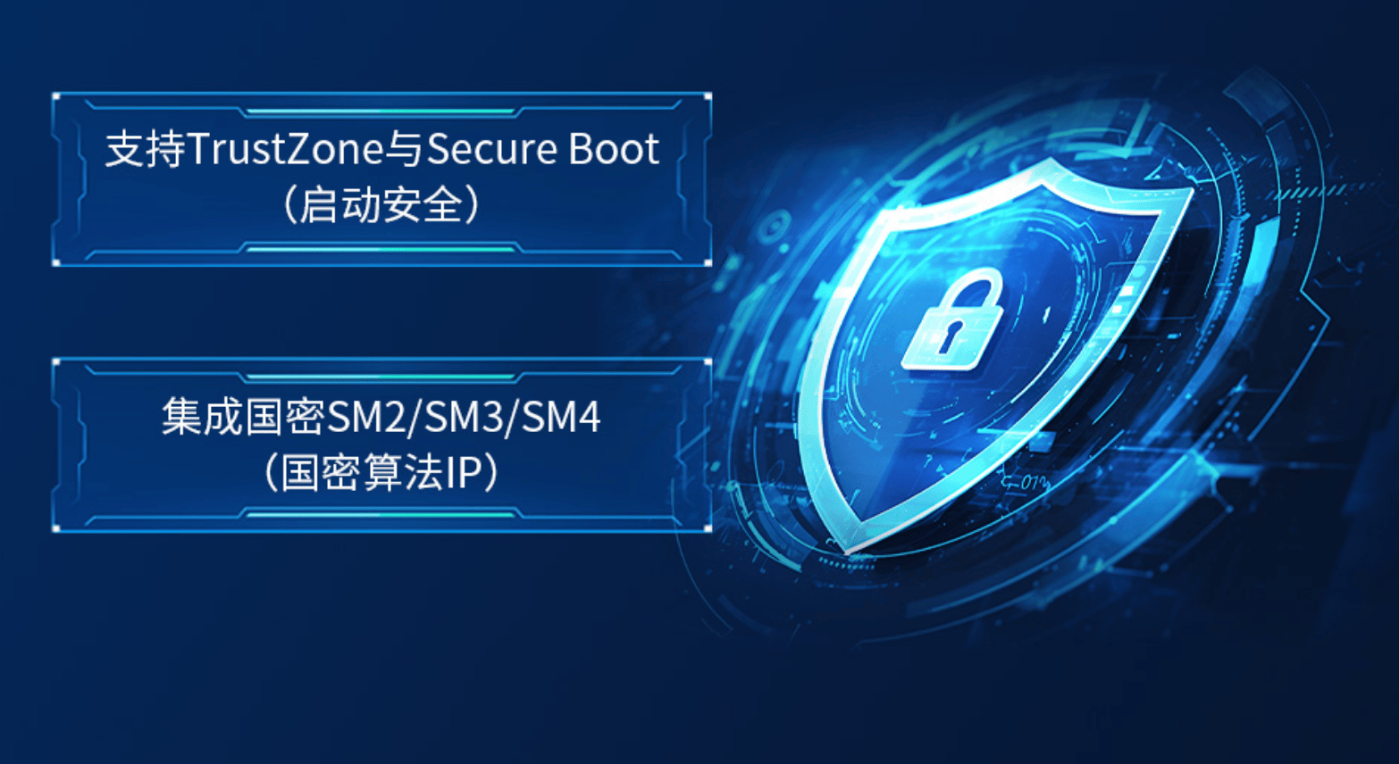 T153汇集了高性能4xCortex-A7、CPU主频1.6GHZ、独立的RISC-V MCU、支持安全启动、国密算法IP、LocalBus等:赋能工业、电力等行业应用。