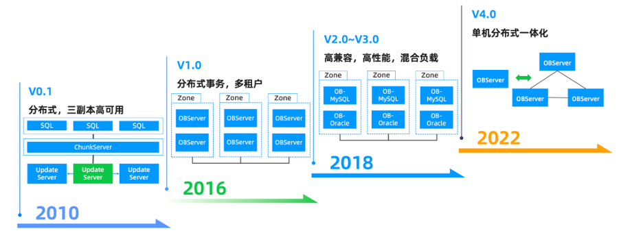 OceanBase 数据库在 4.0 版本中重新设计其内部架构(“Redesigned Architecture”)