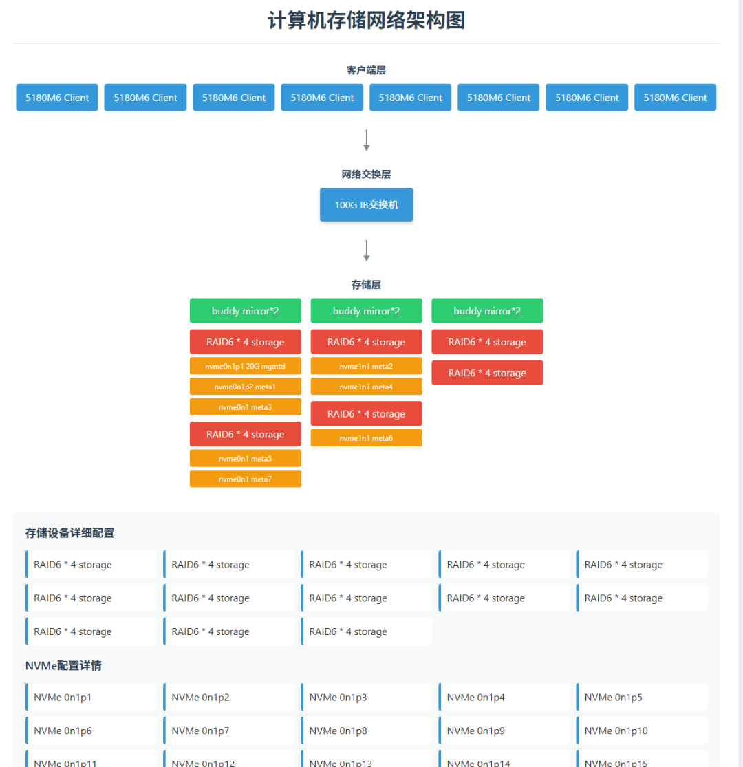 元数据存储节点 | OSD (NVMe) | 2 | 2块1.8TB NVMe盘,各分4区 共创建8个OSD | 元数据池 |