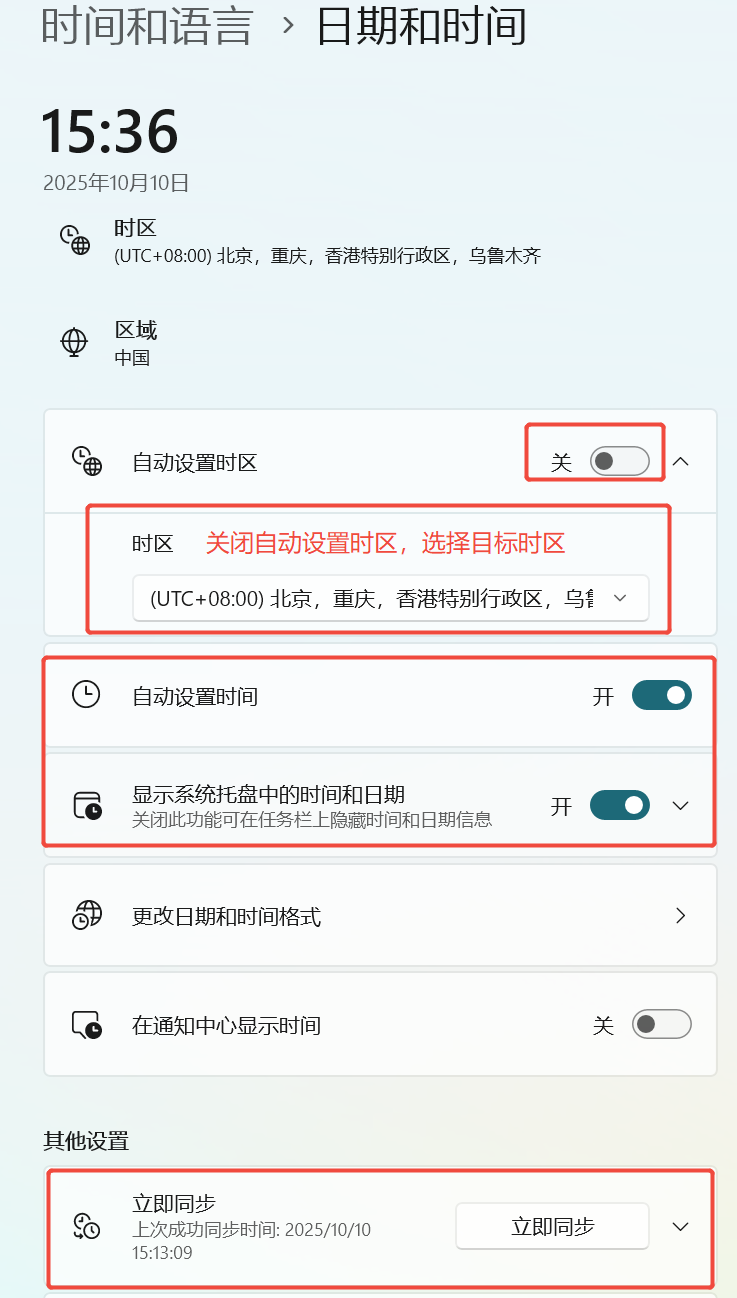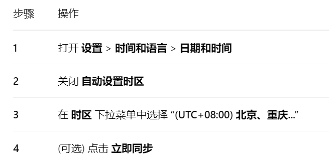 主要步骤:关闭自动设置时区→ 选择目标时区→ 立即同步