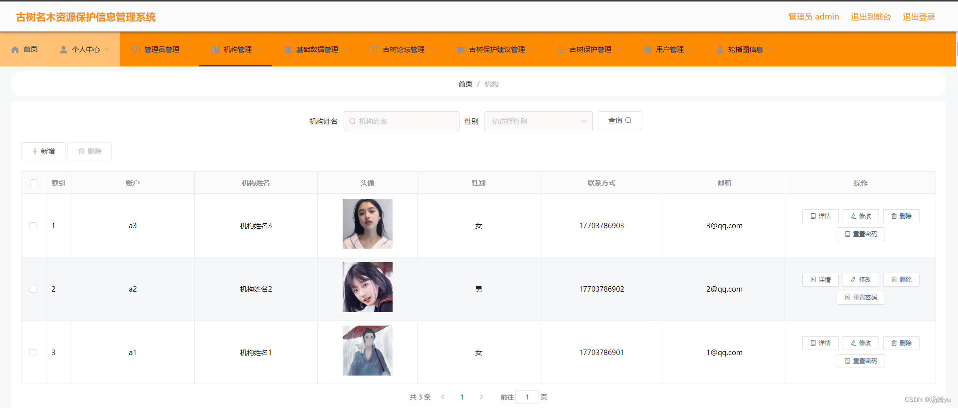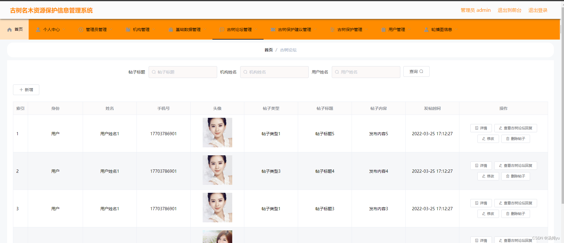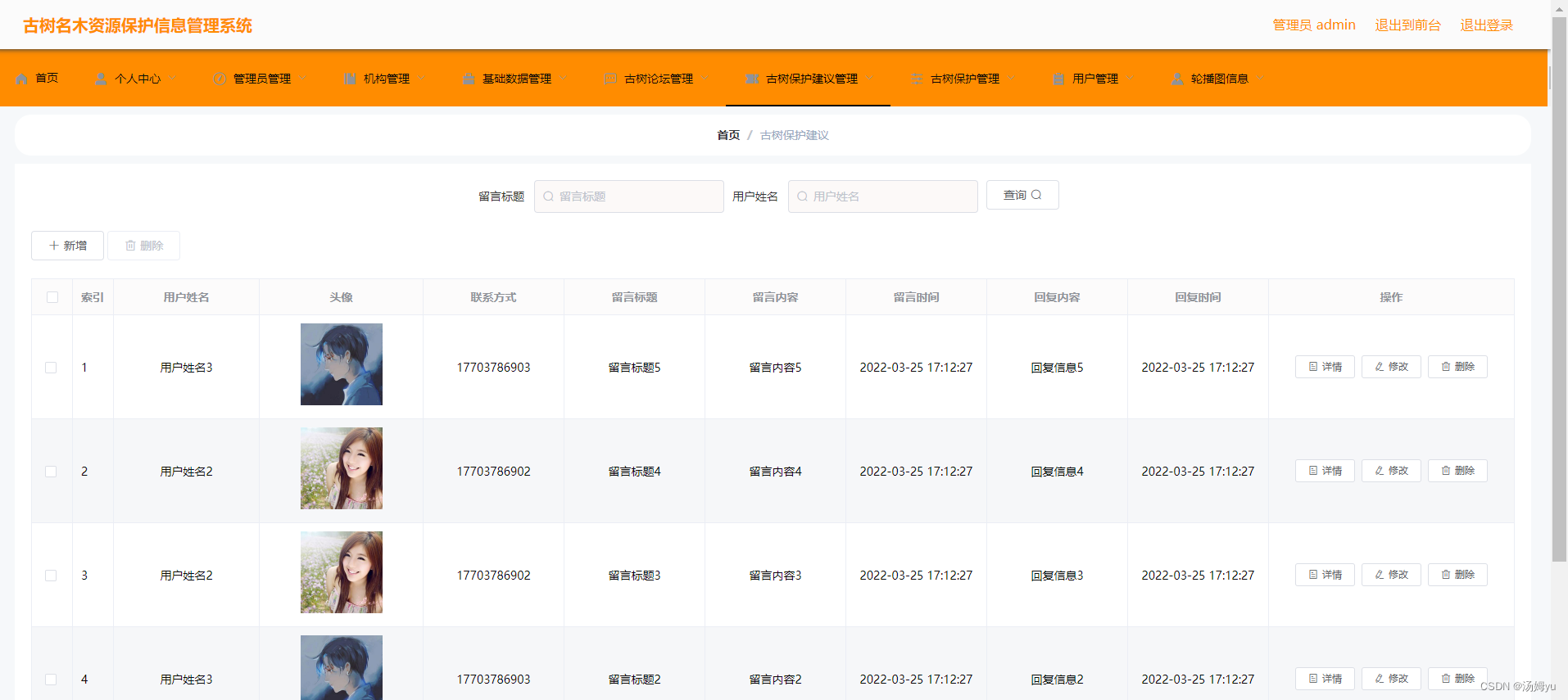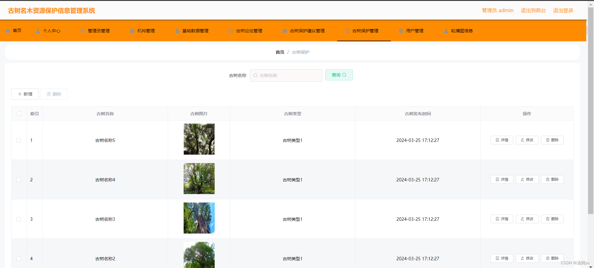 古树作为自然生态系统的重要组成部分,具有丰富的生物多样性、文化遗产和生态功能,但近年来受到环境变化、人类活动和非法破坏等因素的影响,其保护面临严峻挑战。随着人们对生态环境保护意识的增强,对古树资源的保护已成为一项紧迫的任务。因此,建立一套科学、全面的古树保护资源管理系统势在必行。该系统的目标是实现对古树资源的全面监测、科学保护和可持续利用。该管理系统的设计理念包括多方面因素:首先是整合各方资源,包括政府部门、科研机构、民间组织和社会公众,形成共识、协同合作;其次是采用先进的信息技术手段,建立起古树资源的数据库和信息平台,实现对古树分布、生长状况、生态环境等方面的监测和管理;另外,还需要制定科学合理的保护策略和管理措施,包括设立自然保护区、建立保护标准、加强执法力度等。通过古树保护资源管理系统的建立,可以更加有效地保护古树资源,传承历史文化,维护生态平衡,促进可持续发展。同时,该系统还能够提升社会对古树保护的认识和参与度,形成全社会共同参与的保护合力,为后代留下宝贵的自然遗产。