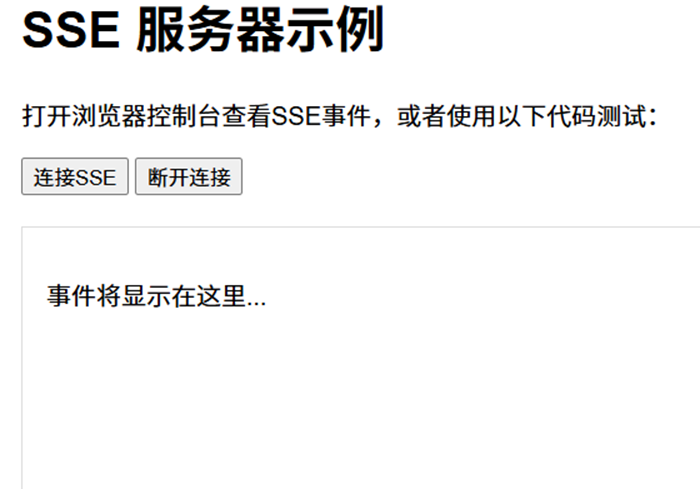 <p>打开浏览器控制台查看SSE事件,或者使用以下代码测试:</p>