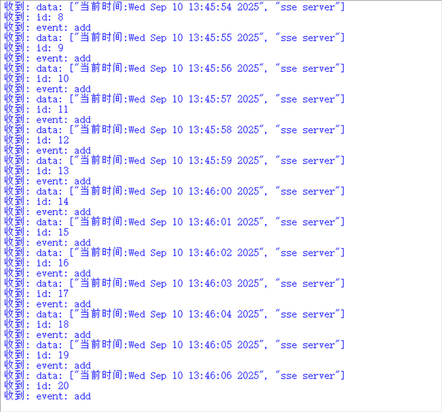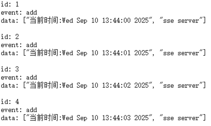 3. id:消息的唯一标识符(ID)。通常是自增的数字或字符串。浏览器在重连时,会通过 HTTP 头Last-Event-ID将这个最后收到的 ID 发送给服务器,帮助服务器知道客户端从哪里断开的,从而发送遗漏的消息。