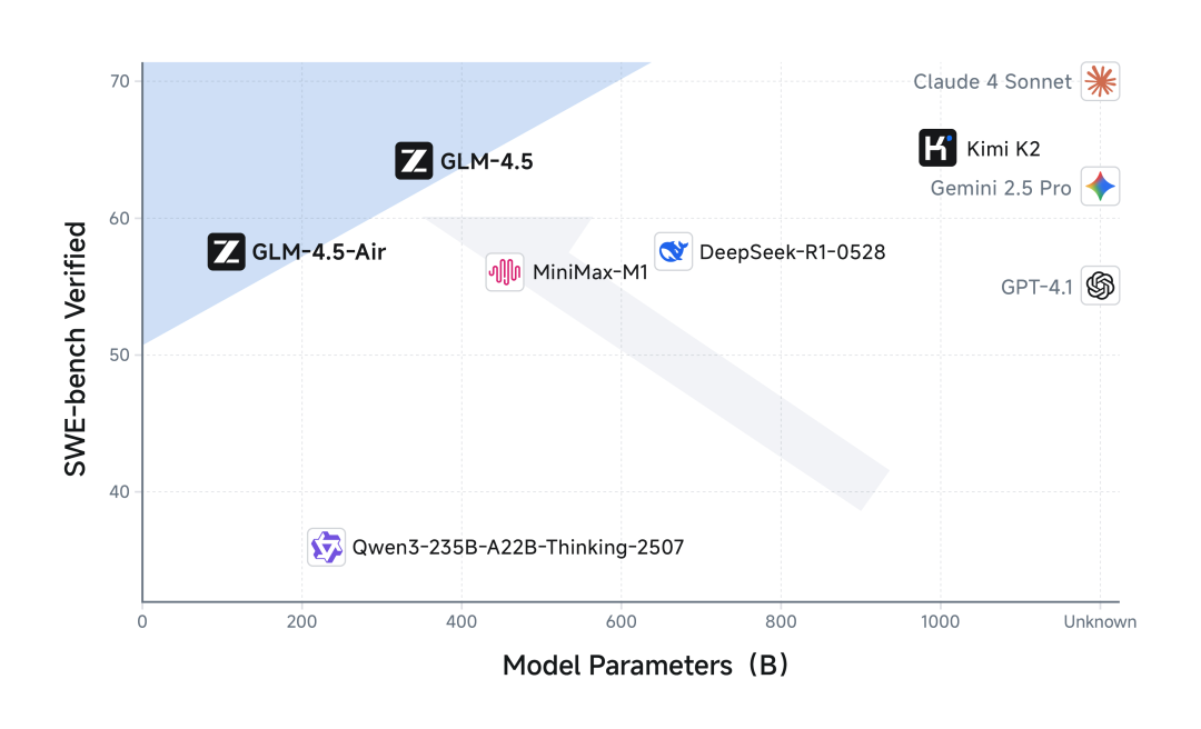 GLM-4.5系列模型是为智能代理设计的基础模型,GLM-4.5-Air 采用了更紧凑的设计,总共有1060 亿参数,120 亿活跃参数。在 12 个行业标准基准测试中的全面评估中,GLM-4.5-Air 在保持卓越效率的同时,也取得了具有竞争力的59.8分。