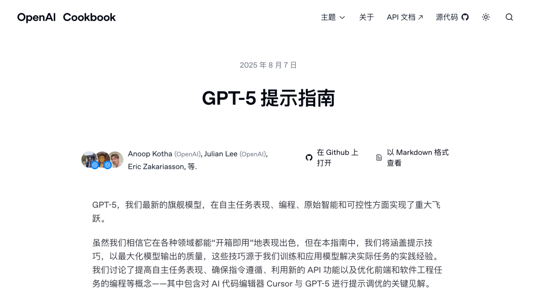 我们相信它在各种应用场景下都能“开箱即用”,表现出色。但在这份指南中,我们将分享一些旨在最大化模型输出质量的提示技巧,这些技巧源于我们训练模型并将其应用于真实世界任务的宝贵经验。我们将深入探讨如何提升智能体任务性能、确保指令遵循、运用全新的 API 功能,以及为前端和软件工程任务优化编程等概念,并重点分享 AI 代码编辑器 Cursor 在 GPT-5 提示词调优方面的关键见解。