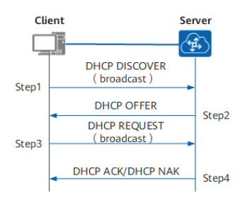 客户端首次接入网络时,无 IP 地址,需通过以下四阶段获取配置: