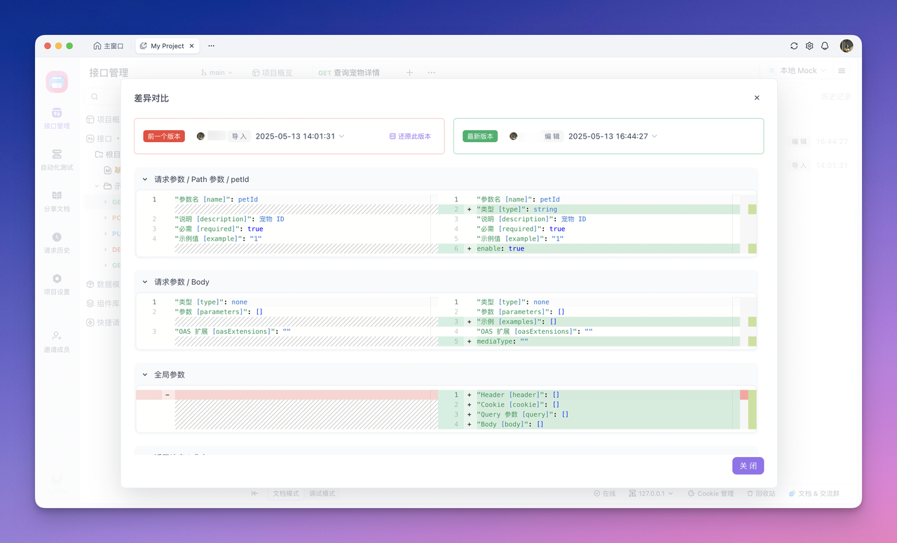 ✅ 趋势解读: Apifox 提供的全面版本控制机制,让团队能够清晰追溯每个版本的修改历史,确保 API 的演进过程可控且透明。