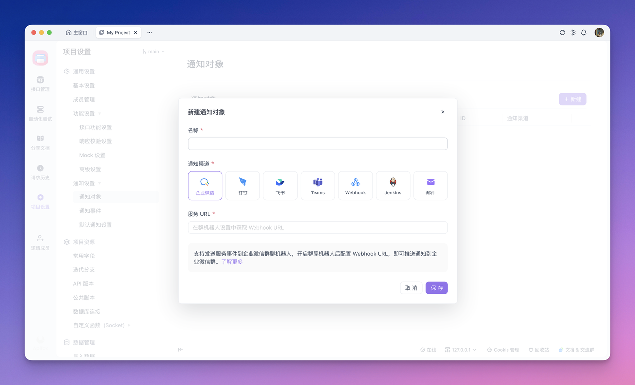 Apifox:支持上下文评论功能,可以在 API 文档中直接 @ 提及成员并指派任务。系统还支持集成多种通知渠道,如钉钉、企业微信、邮件等,实现即时通知。所有评论和任务指派内容可以追溯,保证信息传递的透明与高效。