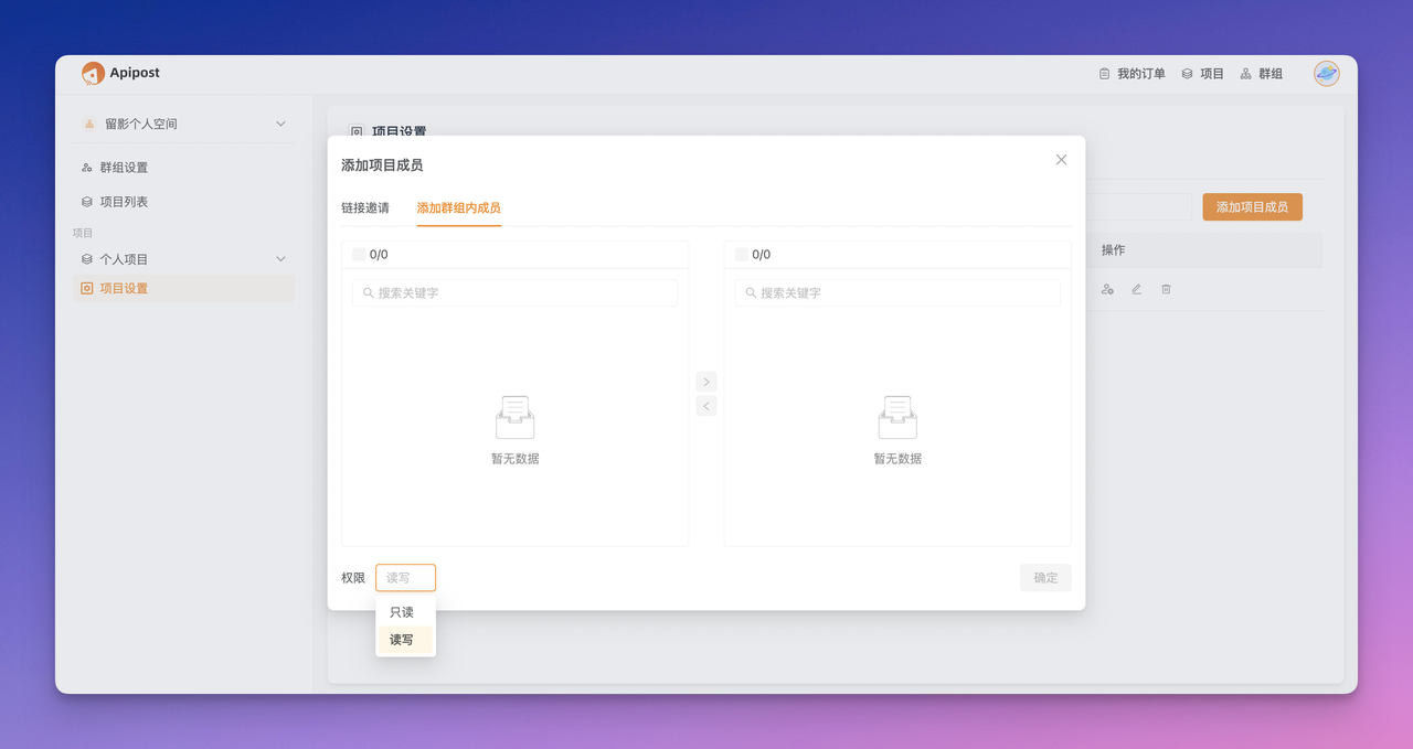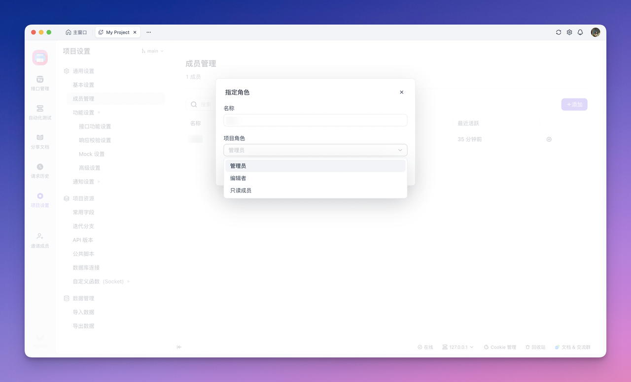 Apipost:提供基础的团队成员管理和项目权限设置,但权限控制粒度相对简单,缺乏复杂团队结构下的灵活管理能力。