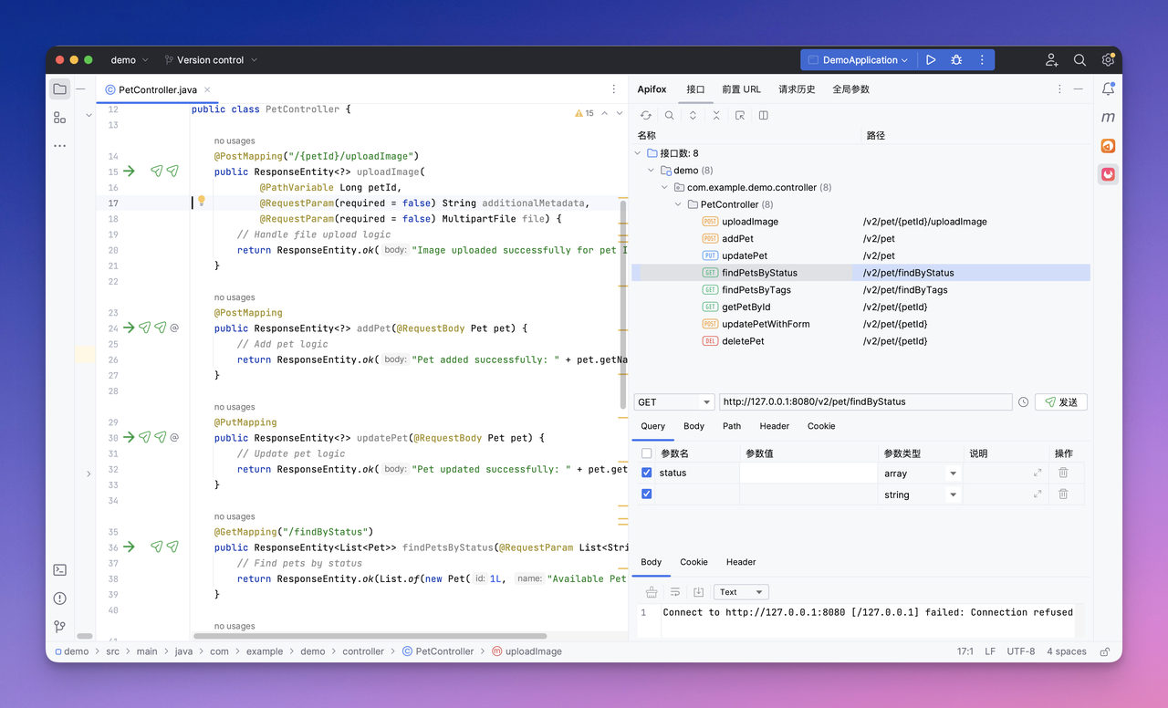 Apifox:提供 IntelliJ IDEA 插件,方便开发者在代码环境中快速查看和调用 API 或测试信息,提高工作流闭环效率。