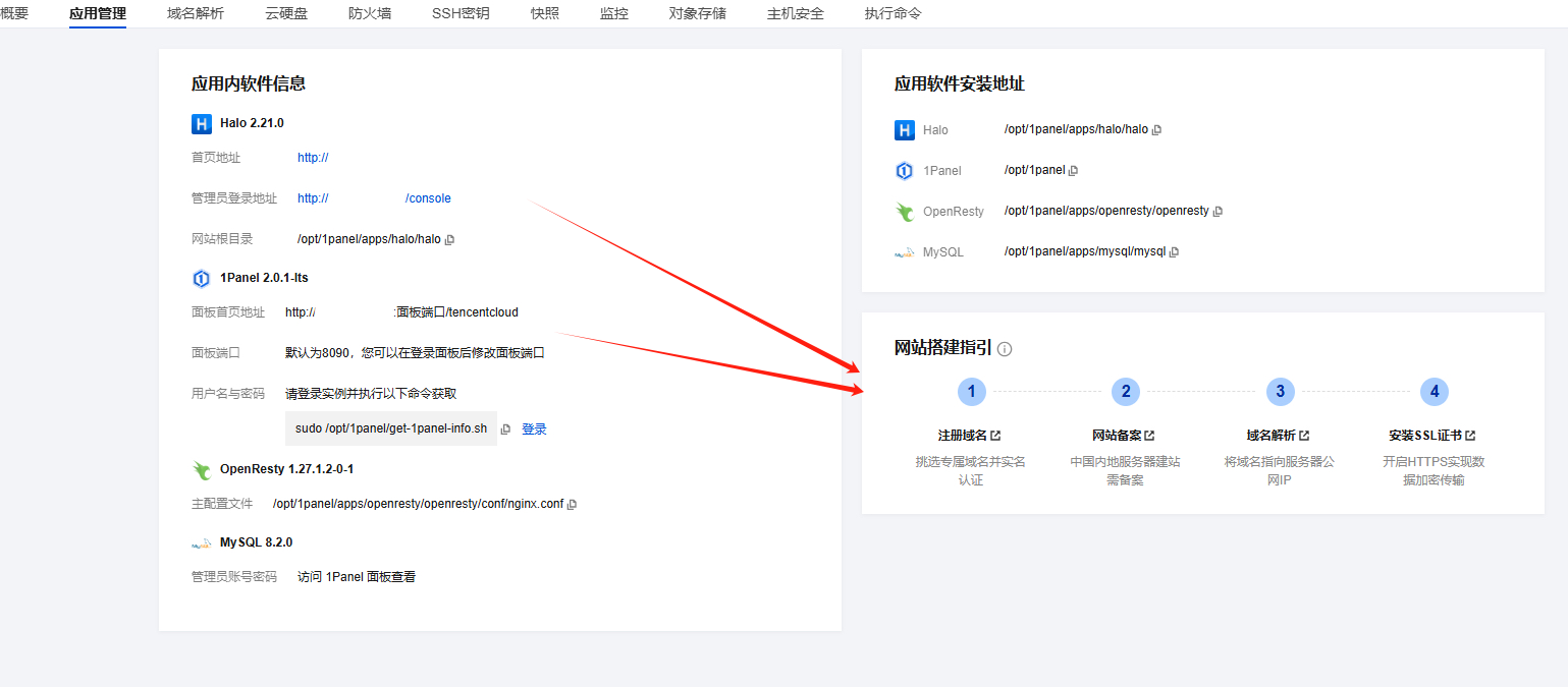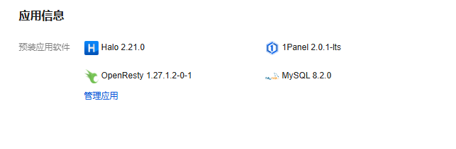 进入管理应用,可以看到这个里面的Halo和1Panel登录的地址和端口,使用IE或者火狐继续进入,就完成啦