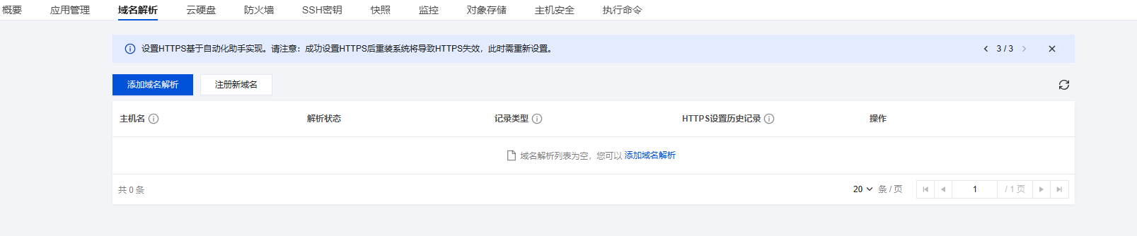 在这里添加域名解析就行了,无需去DNS解析控制台去解析(前提是要去做域名备案,才能使用,如没有做域名备案,打开则是让你去做域名备案)