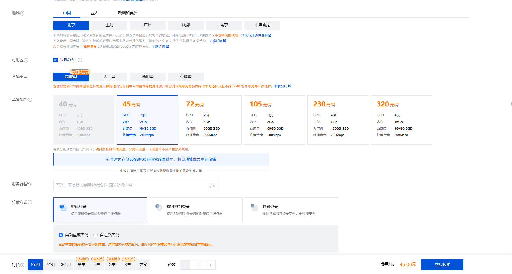 在腾讯云官方上申请一个便宜的轻量云服务器,如果是刚注册的腾讯云账号的(完成个人实名认证,这个身份证是没有注册到另一个腾讯云账号里面),是可以免费申领一个月的轻量云服务器。